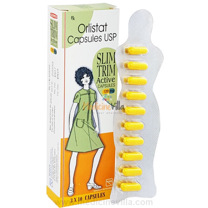 Slim Trim Active 120 mg Capsule is a lipase inhibitor. It acts in the stomach and small intestine by blocking the absorption of fat from food by blocking enzymes responsible for the breakdown of fat.