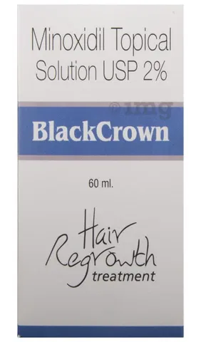 BlackCrown 2% Solution belongs to a class of drugs known as vasodilators. It is used to promote hair growth in men with male pattern baldness.