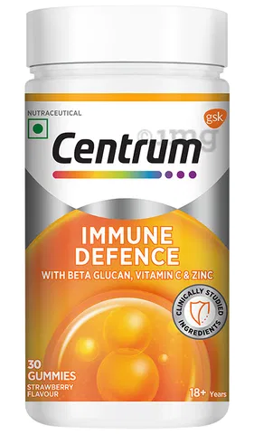 Centrum Immune Defence Gummies Gummy Strawberry contain wellmune beta-glucan, vitamin C and zinc. These ingredients work with the immune system to support it.