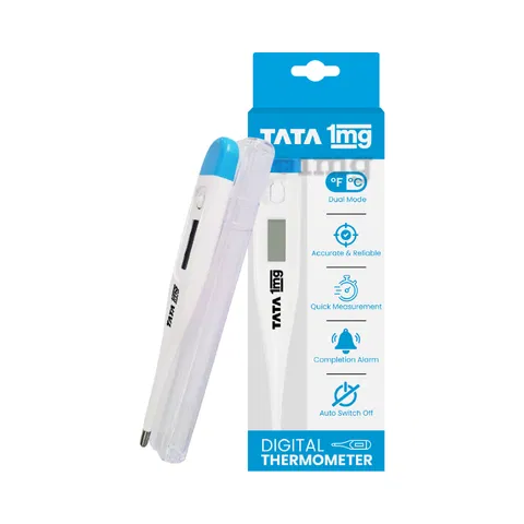 Tata 1mg Digital Thermometer is used to measure the body temperature and convert the reading into a readable format such as Celsius or Fahrenheit.