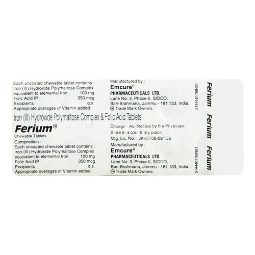 Do not take Ferium Chewable Tablet 10’s if you are allergic to Ferium Chewable Tablet 10’s, iron, folic acid or any of the ingredients of Ferium Chewable Tablet 10’s. Do not start taking any new medication without telling your doctor. Ferium Chewable Tablet 10’s is generally given at least 4 weeks before pregnancy and is continued up to 3 months of pregnancy. If you have got any part of the stomach removed, please inform your doctor before taking Ferium Chewable Tablet 10’s. Ferium Chewable Tablet 10’s is given to a child under 12 years of age should be given under strict medical supervision.