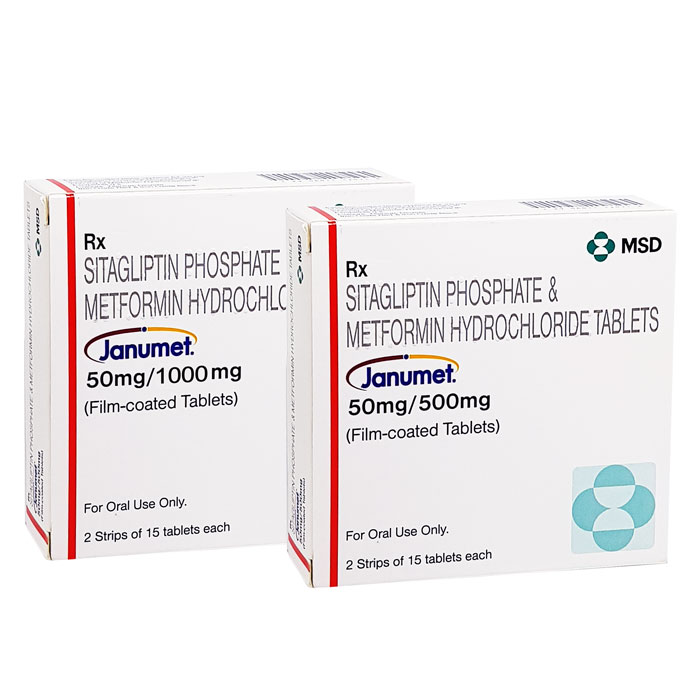 Janumet 50mg/500mg Tablet is a combination of two medicines that control high blood sugar levels in people with type 2 diabetes mellitus. This helps prevent serious complications of diabetes such as kidney damage and blindness and may reduce your chances of having a heart attack or stroke.