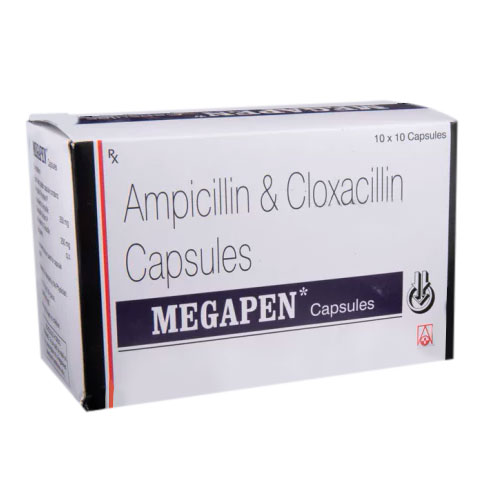 Megapen (Ampicillin/Cloxacillin) Capsule is a combination medicine that is used to treat various types of bacterial infections. It fights against the microorganisms to prevent their growth and further spread of the infection.Megapen Capsule is a prescription medicine. It is advised to take it as per the prescription. It can be taken with or without food, but it must be taken at a fixed time to ensure better efficacy. Do not consume more than the recommended dose, as this may have harmful effects on your body.