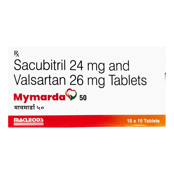 Mymarda 24mg/26mg Tablet is a combination of two medicines used to treat heart failure. It reduces the risk of hospitalization and death in patients with long-lasting (chronic) heart failure. It is generally given along with other heart failure medications.