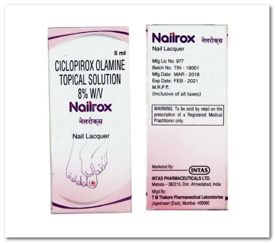 Nailrox Nail Lacquer (Ciclopirox) is an antifungal medication. It is used in the treatment of fungal skin and nail infections. It works by stopping the growth of fungi, thus treating the infection.Nailrox Nail Lacquer is for external use only. You should use it in the dose and duration as directed by your doctor. The amount you need, and how long you take it will depend on what you are being treated for. You should normally wash and dry the affected area before applying a thin layer of the medicine.