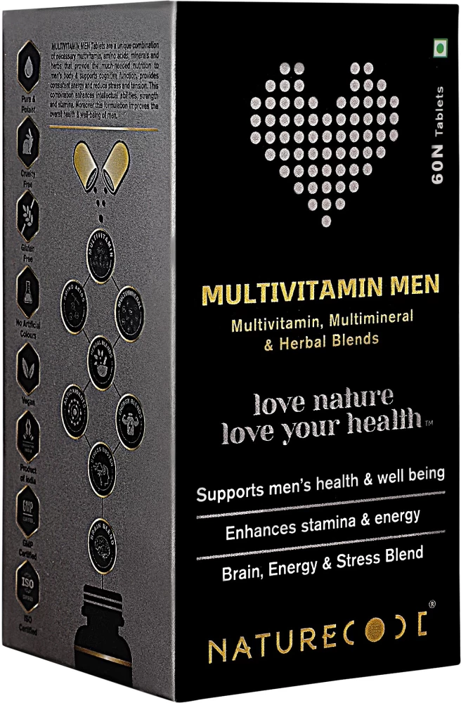 Nature Code Multivitamin Men Tablet is a unique combination of necessary multivitamins, amino acids, minerals, and herbs that provide the much-needed nutrition to men’s bodies, support cognitive function, provide consistent energy, and reduce stress and tension. This combination enhances intellectual abilities, strength, and stamina. Moreover, this formulation improves the overall health and well-being of men.