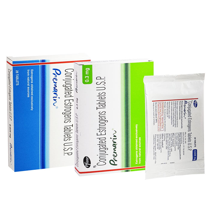 Premarin (Conjugated Estrogen) Tablet is a female sex hormone (estrogen). It is a part of female hormone replacement therapy which helps in treating estrogen deficiency symptoms like hot flushes (red and warm face) and vaginal dryness.Premarin 0.3mg Tablet is also used to prevent osteoporosis (thinning and weakening of bone) in postmenopausal women, who are at high risk of fractures and can not take other preventive medicines for osteoporosis.
