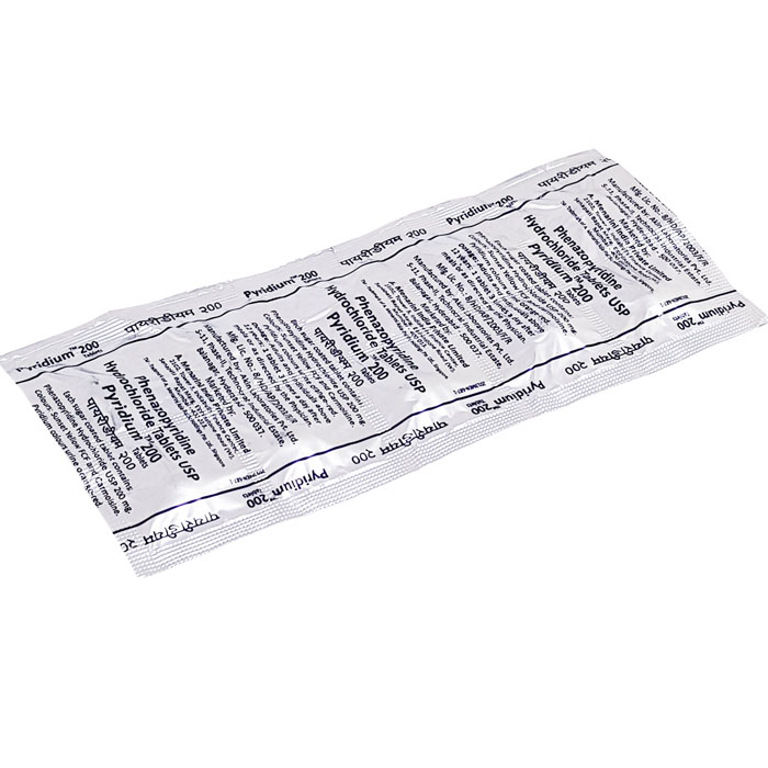 Pyridium (Phenazopyridine) Tablet is used for symptomatic relief of pain. It helps treat burning sensation, urgency to urinate, and other discomforts arising from the urinary tract caused by infection, trauma, surgery, etc. It should be used only for symptomatic relief of pain and not as a substitute for other treatments.Pyridium 200 Tablet is best taken with food after eating a snack. This will reduce stomach upset that can be caused by the medicine. In general, the use of this medicine should not exceed more than 2 days.