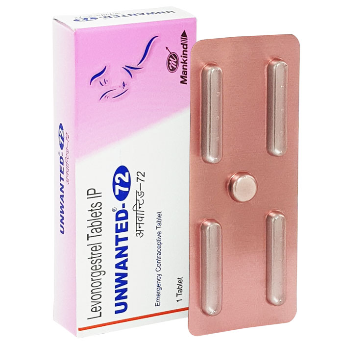 Unwanted 72 (Levonorgestrel) is used as an emergency contraceptive tablet to prevent unwanted pregnancy in case of unprotected sex or contraception failure. As the name suggests, it should be taken as soon as possible, preferably within 72 hours of unprotected sex.This tablet contains levonorgestrel as an active ingredient. When the active compound gets into the bloodstream, it blocks the formation of hormones such as luteinizing hormone (LH) and follicle-stimulating hormone (FSH).