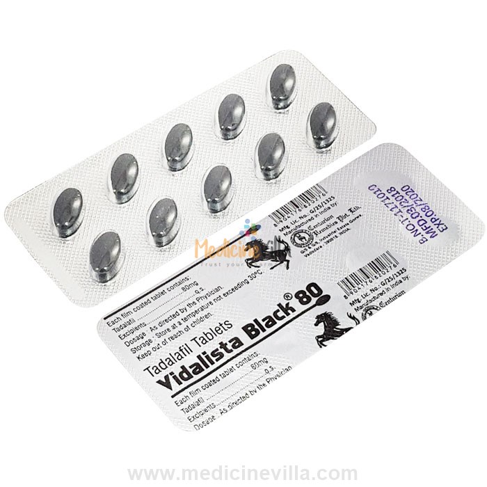 Vidalista Black 80 mg is a medication accessible as a therapy for Erectile Dysfunction. It consists of Tadalafil (Cialis). As it is a phosphodiesterase type 5 (PDE5) inhibitor, it inhibits the guanosine monophosphate cycle (cGMP). It increases the blood vessels of the male organ or the penis.
