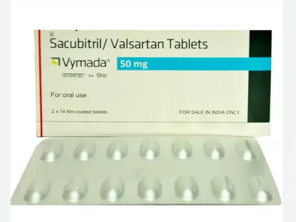 Heart failure means your heart is weak and cannot pump enough blood to your lungs and the rest of your body. The most common symptoms are breathlessness, tiredness, and swelling in your legs, ankles, abdomen, and other body parts. Vymada 100mg Tablet is a combination of two medicines, namely valsartan and sacubitril. Both of these medicines work in different ways to lower blood pressure. This makes it easier for your heart to pump blood around your body and is, therefore, an effective treatment for heart failure. This medicine will help relieve your symptoms, making you feel better and more energetic. To help this medicine be effective, you should make appropriate lifestyle changes (such as eating healthily and staying active). Take it regularly and keep taking it even if you feel better.